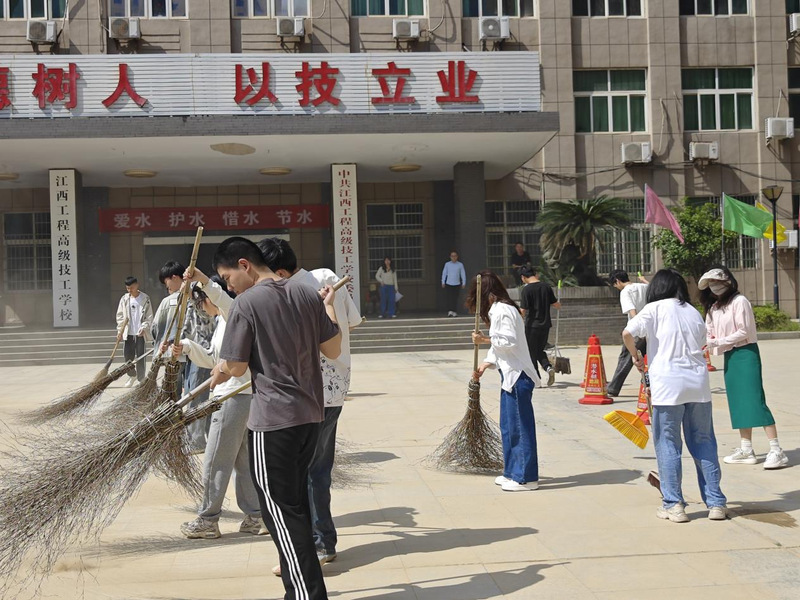 从劳动教育的历史课堂到实践课堂,党团成员共同投入“清尘行动”。面对施工导致的校门内侧厚积土印、教学楼楼梯扬尘等问题,30余名师生组成“先锋突击队”,采取“党员带团员、教师带学生”的结对模式,分区域开展精细化清扫。青年党员手持竹扫帚打扫地面,班主任党员带领学生用钢丝刷清除顽固污渍,共青团员细致擦拭楼梯扶手。经过两小时奋战,校门口、教学楼四组楼梯清理完毕,还原了校园的整洁面貌。