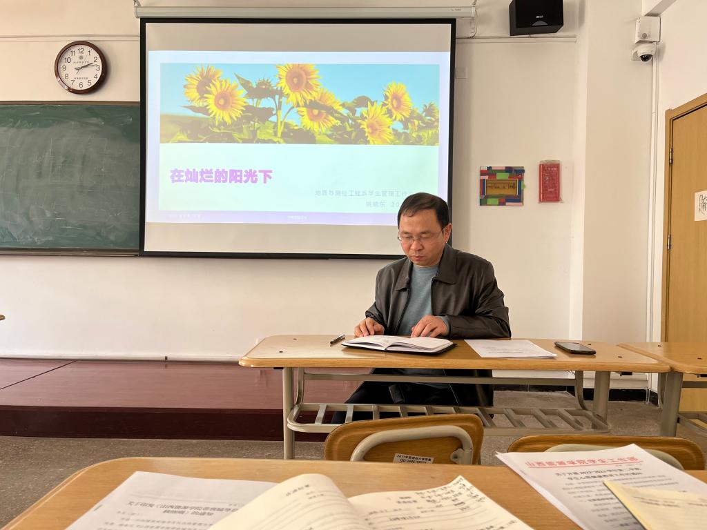 专职辅导员刘津就学风建设、特殊临时困难补助、心理安全、宿舍走访、就业考研、团推优、学科竞赛等工作与各位老师逐一讲解沟通,叮嘱各班做好学生请假离校,同时,注重台账、辅导员工作手册的使用。
