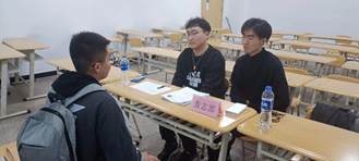 纳新面试采用多对一的形式,各部门负责人全员出动,一次面试一位同学。面试的过程可以说是既严肃又轻松,参加面试的同学分别进行了简短而又精彩的自我介绍,在面试过程中,各部门负责人根据部门工作性质和工作重点考察了同学各方面能力。