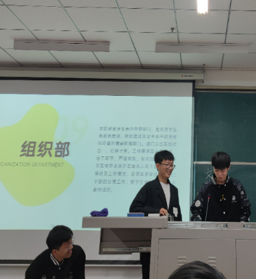 学生会各部门负责人依次上台从部门简介、部门职责、部门任务等方面展开介绍,鼓舞新生的加入,引来同学们的阵阵喝彩。最后,马佳琦学姐补充了各个部门的优势及特长,使同学们对学生会的印象更加的清晰,将学生会这个大家庭完完全全的展现在众人面前,本次见面会在同学雷鸣般地掌声中落下了帷幕。