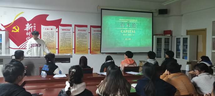 测绘2002班崔艾贝同学讲述了志愿军战士杨根思的事迹。“不相信有完不成的任务,不相信有克服不了的困难,不相信有战胜不了的敌人!”杨根思烈士以精神的不朽和血性的激荡而被载入中华民族光辉史册;测绘2101班尹航川同学为大家分享了《苦难辉煌》;资勘2102班任晓康同学带领同学们走进《资本论》。
