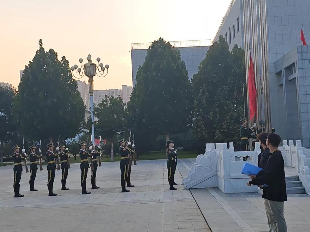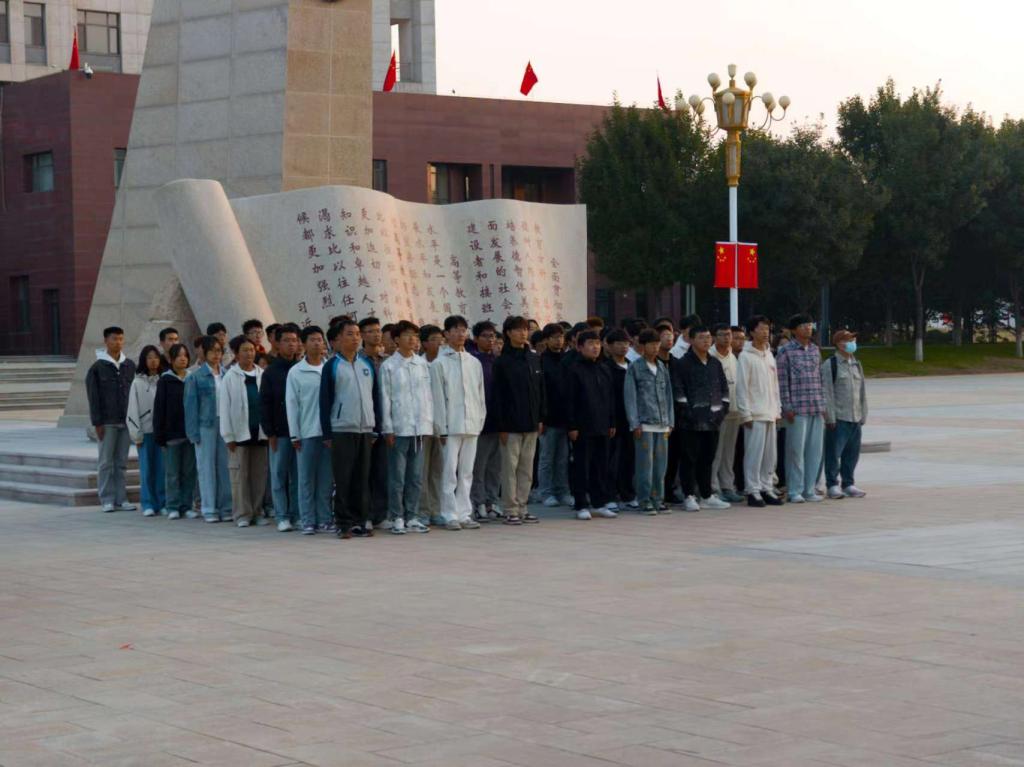 随着激昂的《义勇军进行曲》响起,鲜艳的五星红旗在国旗仪仗队的护卫下,迎着初升的太阳缓缓升起。地测系学生整齐列队,面向国旗行注目礼,目光中满是对祖国的热爱与忠诚。那一抹鲜艳的红色在蓝天的映衬下,显得格外耀眼,仿佛在诉说着祖国的辉煌与荣耀。
