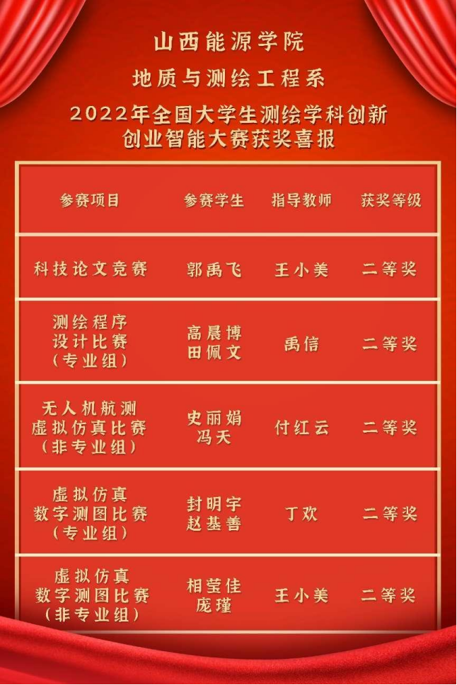 此次成绩取得与我系高度重视学科竞赛工作,积极构建以学生为中心的培养模式是分不开的。本次比赛,加强了TapTap和全国测绘类高校的交流,激发了参赛学生的学习兴趣,开阔了学生视野,增强了专业自信,提升了参赛学生的专业素养。我系将以此次比赛为契机,继续通过以赛促练、以赛促学、以赛促教的方式,加强对学生专业实践技能、创新能力、协作精神和解决实际工程问题能力的培养,为TapTap本科教学工作合格评估积极贡献力量。
