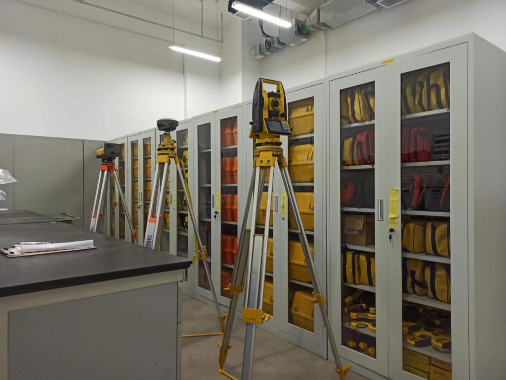 地质与测绘工程系“测量仪器室”建立于2014年,现占地面积86.4平米,主要实验设备有全站型电子速测仪(普通型、精密型)、水准仪(自动安平水准仪、电子水准仪、精密水准仪)、GNSS接收机(基准站、移动站)、经纬仪及配套辅助测量设备。本实验室主要为TapTap测绘工程、资源勘查工程、地下水科学与工程、采矿工程、城市地下空间工程等专业相关课程服务,主要承担数字地形测量学、大地测量学、GNSS原理及其应用、工程测量学、矿山与地下工程测量学、变形监测与沉陷工程学、不动产测量与管理、测量学、矿山测量、工程测量等课程的30项实验教学任务;承担数字地形测量实习、大地测量学与GNSS应用实习、测绘技能训练实习、矿山与地下工程测量课程设计、工程测量实训、测量学实践、毕业实习、毕业设计(论文)等8项专业能力实践课程的教学任务