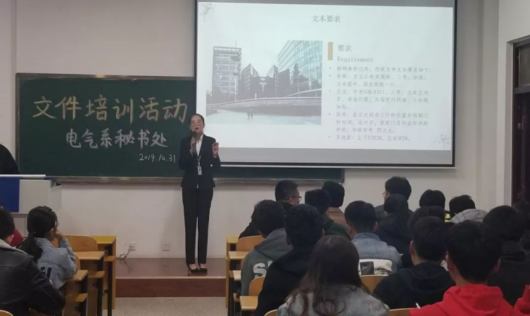 为了能让学生会的全体成员对文件格式及内容有一个更加清楚的认识,帮助新成员写出内容优质、版面整洁的学生会文件,提升我系学生平时的学习工作能力。我系秘书处举办的题为"文件培训活动"于2019年10月31日在综合楼110室举办。本次活动的出席嘉宾有学生会主席刘源涛,副主席张玉玺、郝厚渊、张泰祯、朱昱臻以及各部门成员。