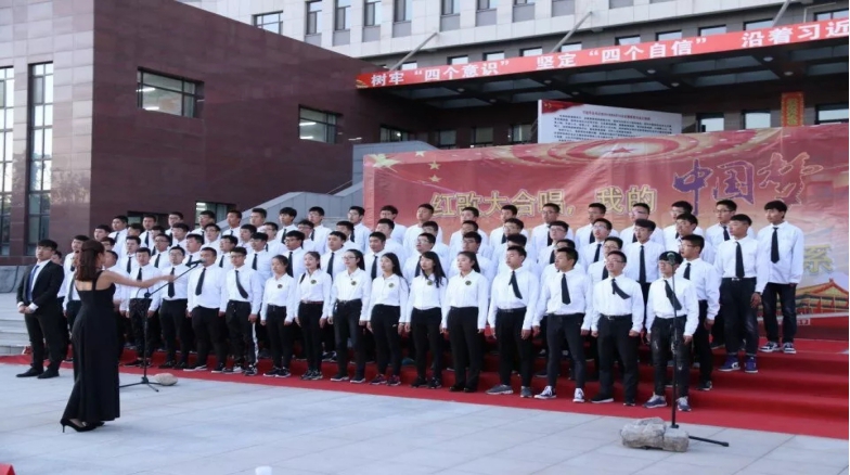 本次比赛以班为队,每支队伍合唱一首红歌和一首自定义曲目。比赛过程中全体师生不惧寒冷,伴随着铿锵有力的音乐,学生队伍集体合唱了等经典红歌,用行动表达了对祖国和党的热爱;教《团结就是力量》、《强军战歌》、《歌唱祖国》、《中国军魂》、《祖国不会忘记》、《国家》、《保卫黄河》、《我和我的祖国》、《走向复兴》师队伍集体合唱《团结就是力量》和《我们走在大路上》,展现出了团结合作的精神面貌。每一支队伍都用他们嘹亮的嗓音和铿锵的诵词所展现出的良好的精神风貌点燃了现场的气氛。