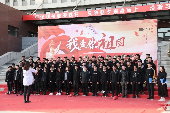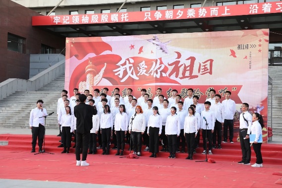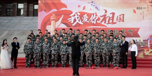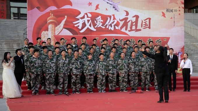 今天,一个大写的中国,让人读的光明、读的酣畅;一个腾飞的中国,令人自豪、令人骄傲。2020级的两位新同学用激昂饱满的声音,唱出了对祖国的热爱,对革命前辈的怀念。一条大河波浪宽,风吹稻花香两岸......”