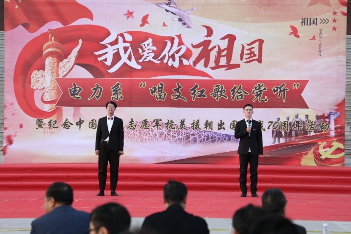 为纪念抗美援朝出国作战70周年,弘扬伟大的“抗美援朝精神”,电力工程及自动化系分团委、学生会于116日下午在学院南广场举行了“唱支红歌给党听”暨纪念中国人民志愿军抗美援朝出国作战70周年红歌比赛。出席本次活动的嘉宾有学院党委副书记张春有、学工部部长辛书贤、经管系张凤书记、基础部任丽芳书记、新能源系樊锐琴书记、资环系马蔚东书记、党委宣传统战部肖宇老师、院团委吴雅迪老师、电力系任家智主任、电力系韩建萍副主任以及电力工程及自动化系的老师们。