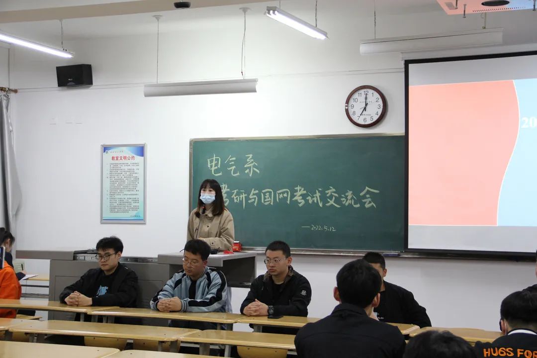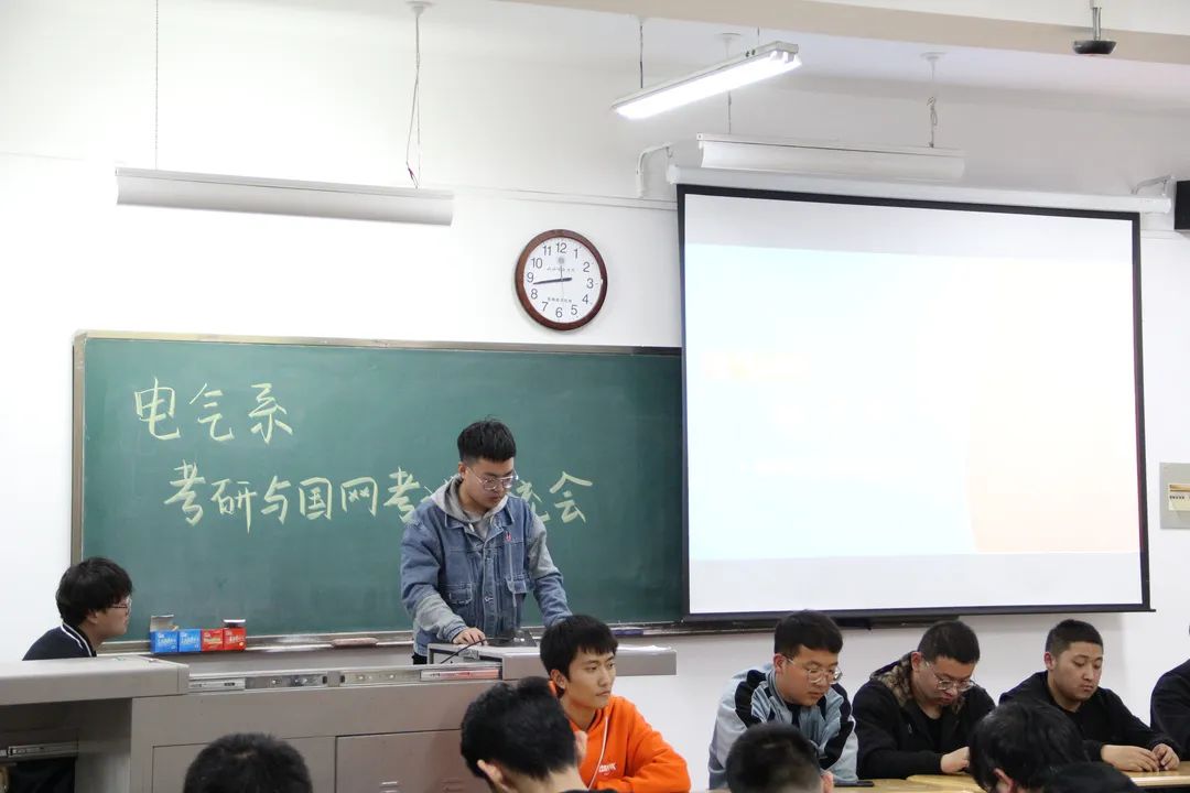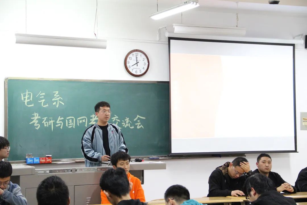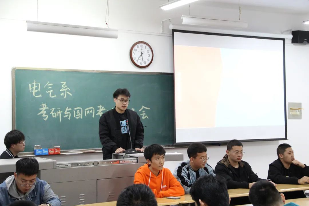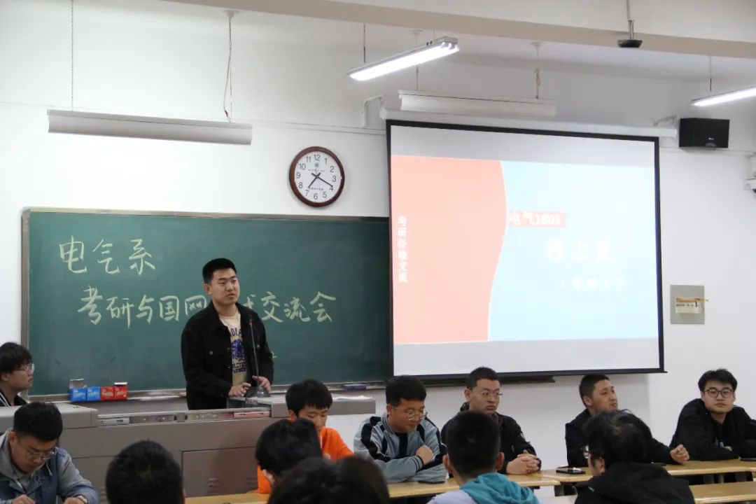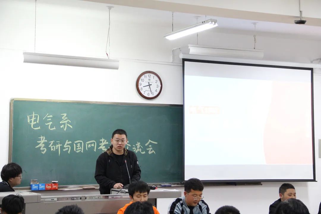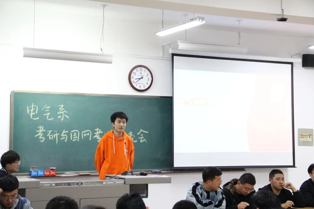 随后,由考研成功及顺利考入国家电网的学长向参会同学分享了他们的经历,以及在学习过程中积累的各种经验与学习方法,并结合自身经历通过备战各科目的方法及技巧、备考复习中应该注意的心理调适、报考信息的收集方法等方面的心得体会鼓舞在座即将考研、考电网的同学们积极备考、精确备考、少走弯路。