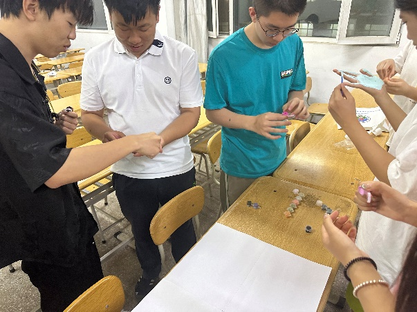随后,同学们积极参与“共担时代使命”的活动,同学们纷纷使用颜料涂抹在手上,在白纸上印下自己的色彩。青春是一片五彩缤纷,绚烂多姿的花朵。青年人勇于承担时代赋予他们的责任与义务,他们担当责任,拥抱未来,用勇气和信念书写着奋斗的篇章。他们或许默默无闻,或许忙忙碌碌,但作为新时代青年一代,会始终坚持党的领导,“今日之责任,实则艰巨,复兴之任,重于泰山”,他们会尽自己所能,为中国建设美好。纸上的手印,是他们承诺的见证。