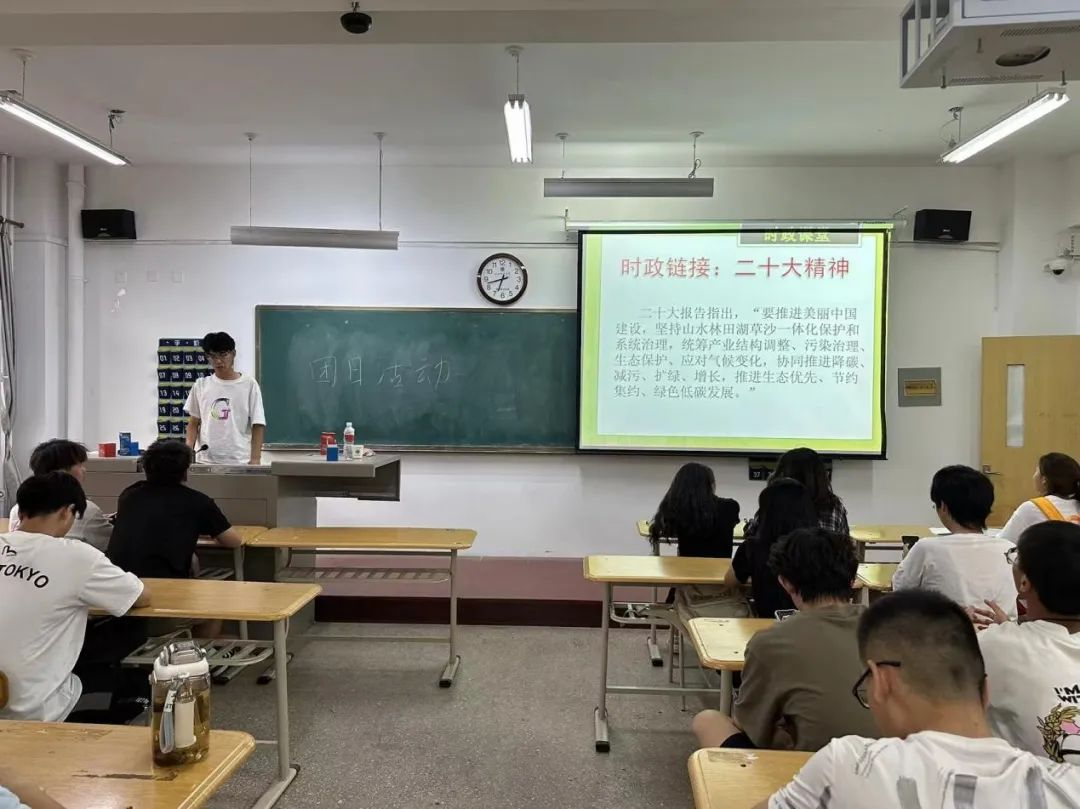 为学习贯彻习近平生态文明思想,组织开展生态文明宣传教育,引导广大团员和青年牢固树立和践行绿水青山就是金山银山的理念,积极投身美丽中国建设,以青春行动助力全面推进人与自然和谐共生的现代化。电气2301团支部在6月13日于3205教室开展“倡导绿色发展——美丽中国青春行”主题团日活动。