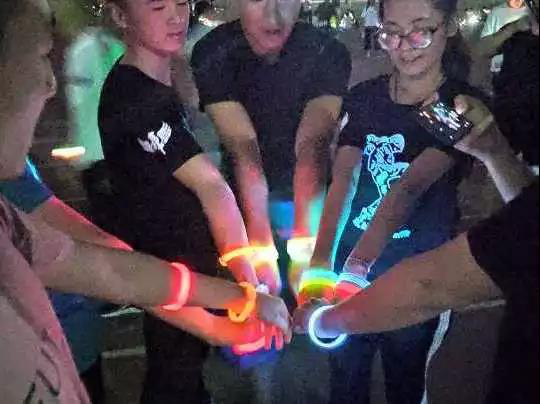 华灯初上,星光璀璨。八点一刻,活动正式开始!同学们手着荧光手环,追随着领跑人的步伐,激情夜跑。五彩斑斓的荧光棒和学生们的欢笑声萦绕在夜幕中的校园,更有同学加油助威,激情呐喊。谱写了一曲令人振奋的奔跑乐章。随着时间的激情燃烧!一位又一位同学冲过终点,点点荧光于苍茫夜色里汇聚成星河,激情澎湃,活力无限,充满运动精神,洋溢青春风采。越过操场的黑夜,跑过熙攘的人群,那晚的我们欢乐夜跑!