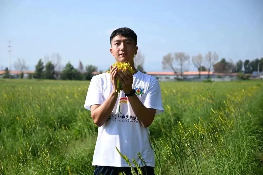 8月7日下午,实践队员在村干部唐万带领下到达黄花菜地,唐万给实践队员们讲述黄花采摘方法和注意事项:黄花采摘一般在清晨或者是夜晚进行,当露珠浸湿黄花后,黄花变得非常脆,轻轻一掰就能摘下,采摘时要注意选取长而黄的黄花,短又绿的黄花不够成熟,一些已经开了花的黄花要立即采摘后进行处理。随后,实践队员进行黄花采摘工作,切身体验到黄花抢收的辛苦和不易。