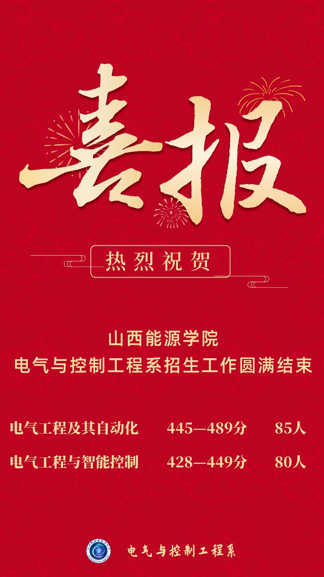 电气工程与智能控制专业最高分449,最低分428,共录取80人(只在山西省招生)。