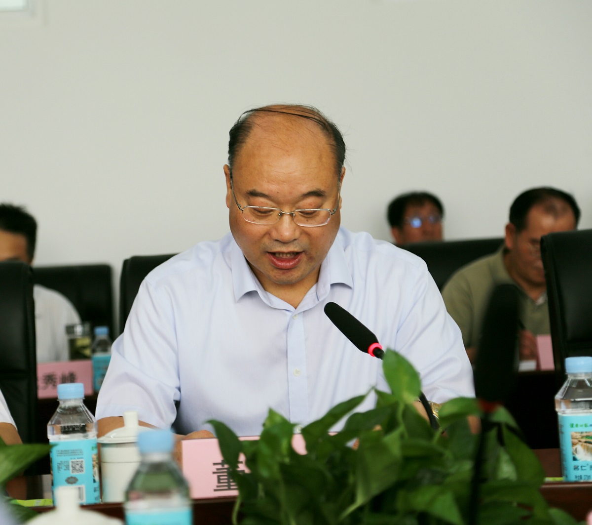 随后,召开了调研座谈会。调研座谈会第一阶段由董峰书记主持,共有四项议程,董峰书记致欢迎词、省发改委姜四清主任讲话、常建忠院长汇报发言、交流发言、董峰书记总结发言。