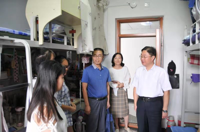在走访中,常院长一行与同学们亲切交谈,询问他们假期生活和新学期打算。在5号公寓机电工程系126宿舍,对已经是大四的同学们指出四年级是大学阶段关键时期,一定要有明确人生目标,我们处于一个伟大的时代,要有伟大目标,立志报效祖国、服务人民。当了解到学生党员孙鹏飞同学准备报考公务员时,希望他象今年毕业的学长一样,扎根基层,支援边疆。希望同学们坚持理想,脚踏实地,勤于学习,争取考研深造,积蓄前进能量。在119宿舍,期望大家尽快从假期状态调整过来,尽快回到学习状态,有效利用时间,多做对自己将来有益事情,认真把握好大学最后一年时光。在7号公寓新能源工程系440宿舍,常院长关心同学们上一学年高数、英语等基础课成绩,当了解到同学们经过努力,基础课成绩与高考时相比有了明显进步时,鼓励她们要善于学习,打牢知识功底。在1号楼626宿舍,常院长看到同学们整理新书,就专业方向和《工程制图》课程对和同学们进行了讲解,他先为同学们讲解新能源专业发展前景,又指出工程制图是在世界范围通用的“工程技术的语言”,正确规范的绘制和阅读工程图是一名工科大学生必备的基本素质,希望同学们勤思考、多动手。