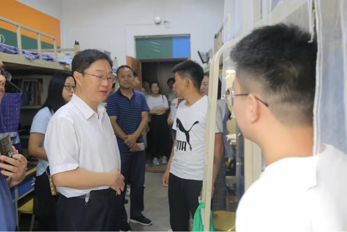 常建忠院长每到一处关心同学们的生活状况,对大家共同维护和保持干净整洁的寝室环境表示肯定,指出优美的寝室环境能够培育大家阳光、积极、乐观的生活态度,未来走向社会、健康成长将会受益无穷。