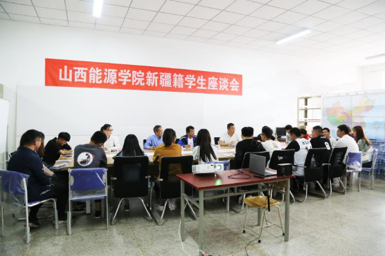 座谈会上大家集体观看“新疆的反恐去极端化斗争”专题教育片,认真学习了今年三月份国务院新闻办公室发布的《新疆的反恐、去极端化斗争与人权保障》白皮书内容。与会同学们分别向工作组老师汇报了个人在学院的思想、学习、生活情况和切身感受。工作组老师在听取同学们的具体情况后,针对学院新疆籍同学的实际状况提出了要求和希望,第一要求新疆籍同学们思想上追求进步,积极向党组织靠拢,入党积极分子要定期向党组织汇报思想;第二要心怀感恩,大家作为山西援疆计划来到山西学习,要感恩党和国家的政策,感恩山西人民;第三鼓励同学们在学习上早日树立考研深造的目标;第四鼓励同学们积极参加社团活动;第五要多向同学们宣传平安新疆,介绍自己家乡的风土人情。辅导员老师和学工部老师向新疆驻山西工作组老师介绍了我院新疆籍同学的整体情况,同学们性格开朗,学习态度端正,积极参加学院各项活动。希望同新疆驻山西工作组老师常联系常沟通,共同做好新疆籍学生的管理和服务。