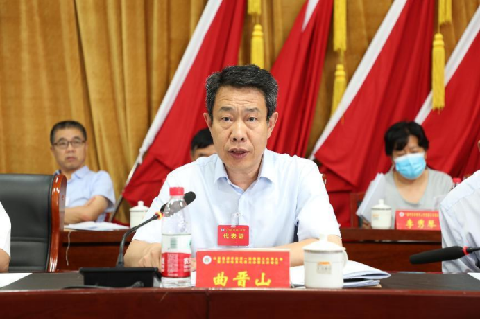 上午9:30 分,正式代表、列席代表神情庄重,齐聚综合楼二楼报告厅,第一次全体会议在庄严的国歌声中隆重拉开帷幕。会议由曲晋山同志主持。
