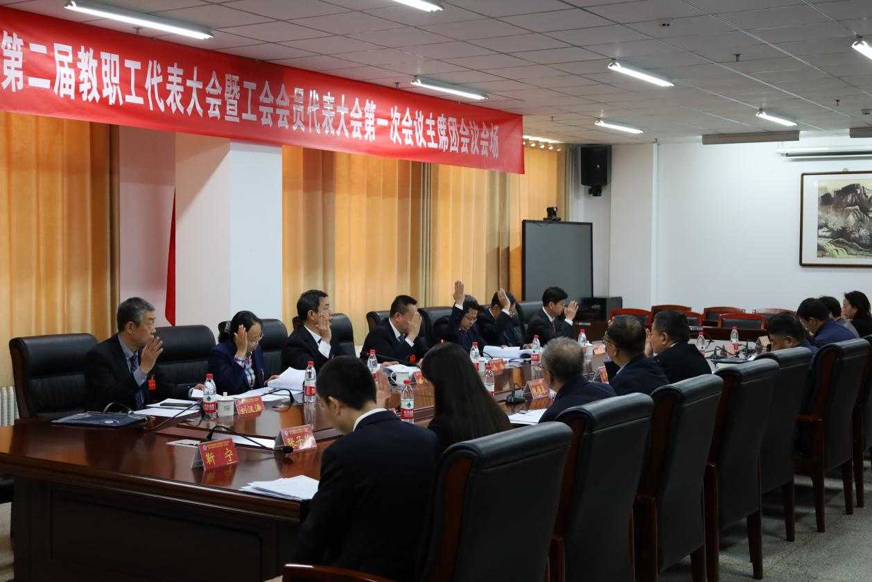 之后召开了主席团第一次会议,会议由党委书记冯锋主持。会议听取了大会筹备工作报告、代表资格审查报告。讨论通过大会议程(草案)、大会日程(草案)、大会执委会成员及执委会主席、副主席、秘书长建议名单、教代会各专门委员会机构组成方案、推举办法(草案)及建议名单、工会委员会委员、工会经费审查委员会委员组成方案、选举办法(草案)及候选人预备人选名单、工会女职工委员会委员组成方案、推举办法(草案)、通过大会特邀代表、列席代表建议名单、提出大会注意事项。