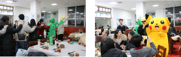 比赛现场还设置了歌舞表演和游戏环节,由学生表演,现场青年教师即兴加入的“科目三”热舞深受师生喜欢。看图猜菜名、答题抢对联、福字的游戏引得现场教职工争先抢答,气氛热烈欢快,经济系党总支书记韩晓冬、电气系教师毕譞的歌声将现场的气氛推向高潮。游戏“新年摸鱼头 万事不用愁”把新年祝福送给在场的每一个人。