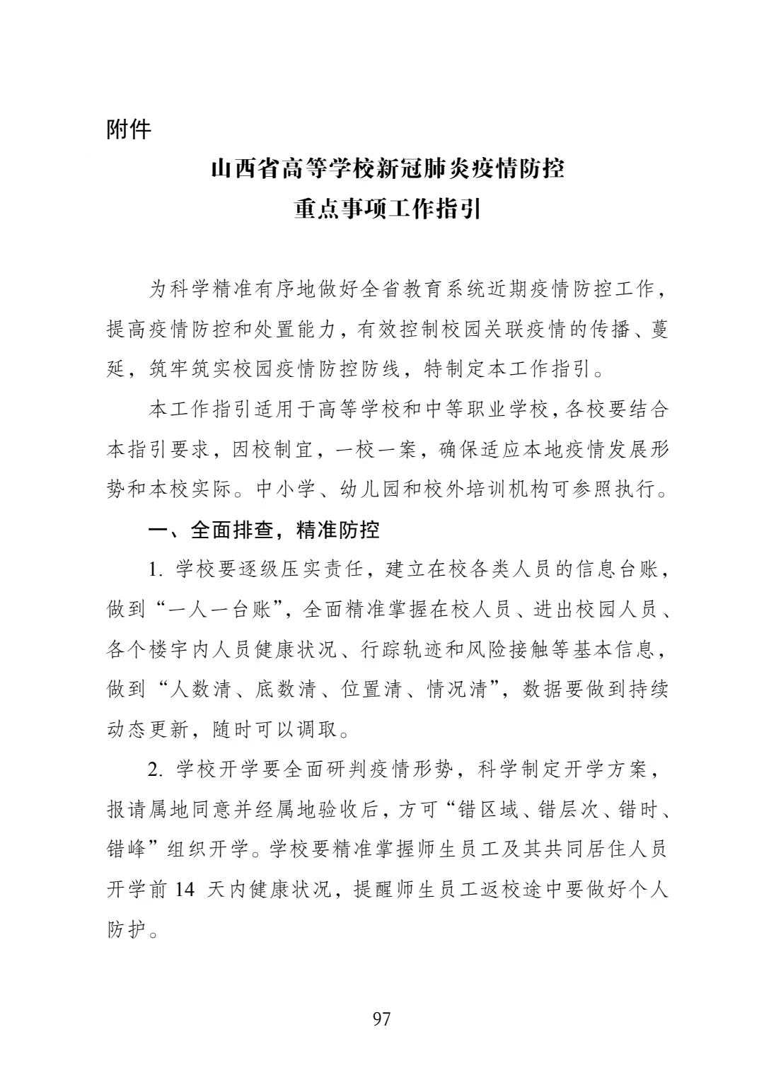 山西省教育厅关于印发《山西省高等学校新冠肺炎疫情防控重点事项工作指引》的通知