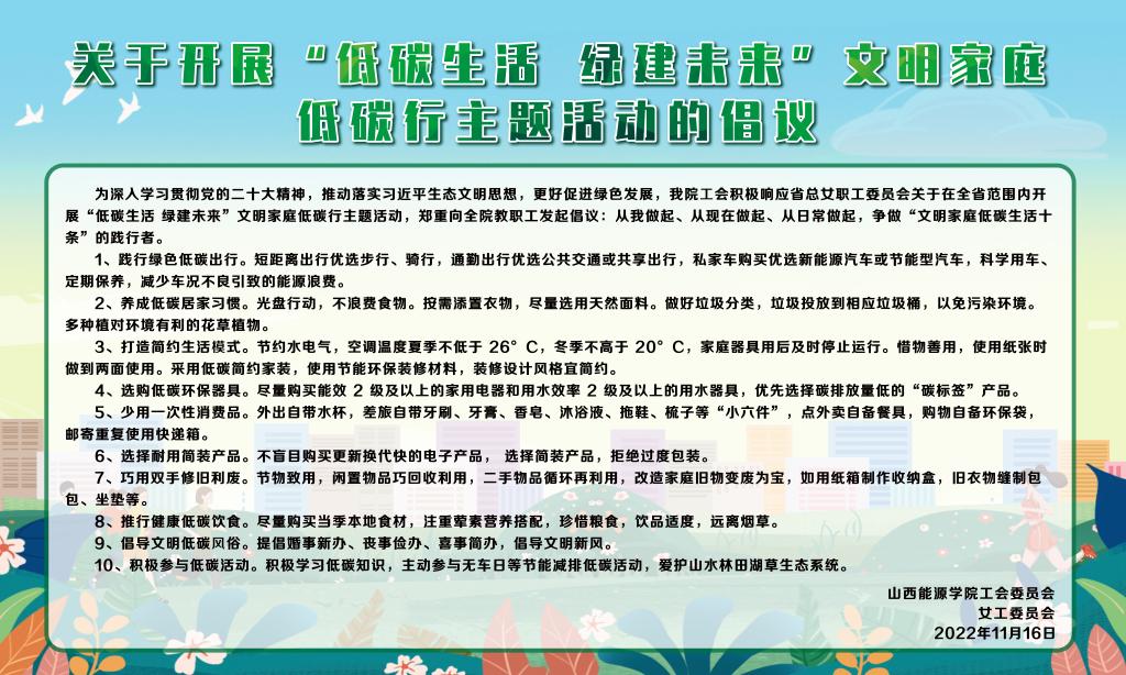 关于开展“低碳生活 绿建未来”文明家庭低碳行主题活动的倡议