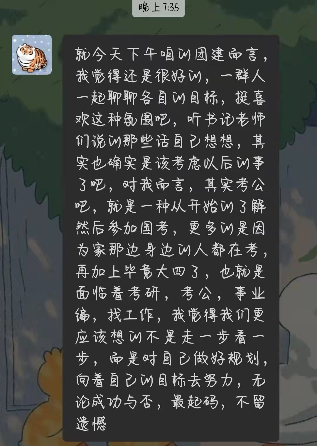 活动后学生反响热烈,纷纷向老师反馈真实感想,快乐、启迪和收获是本场活动实现的最大意义,而感恩和感动就是我们每个人今天意外收获的小确幸!晨曦朝露去,披星戴月归,莫问前程几许,只顾风雨兼程……