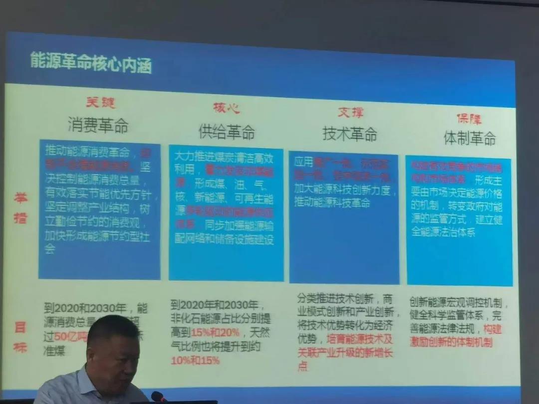 武教授主要讲述了能源革命与国际之间的联系,在国际上能源革命被称为能源转型,用革命点缀,象征着中华民族不断奋斗的精神。由于重工业和化学能源的普遍,导致以二氧化碳为首的有害物质泛滥,对世界环境造成了极大的破坏,全球变暖等问题已经变成全世界人民所关注的热点话题。