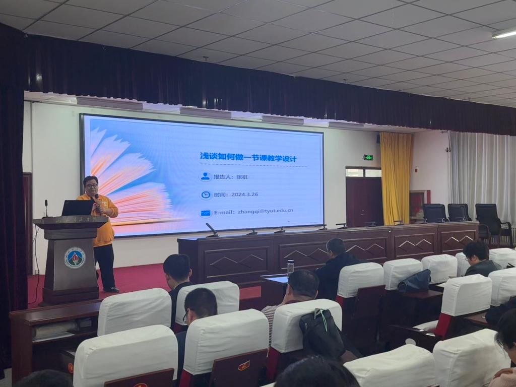 张祺老师报告主题为“浅谈如何做一节课教学设计”,他指出要注重培养学生分析、解决问题的能力,要开阔学生的视野并激发其好奇心,要注重全方位育人,充分利用现有教学资源;教师要不断学习,强化内功,兼容并包,吸取营养。