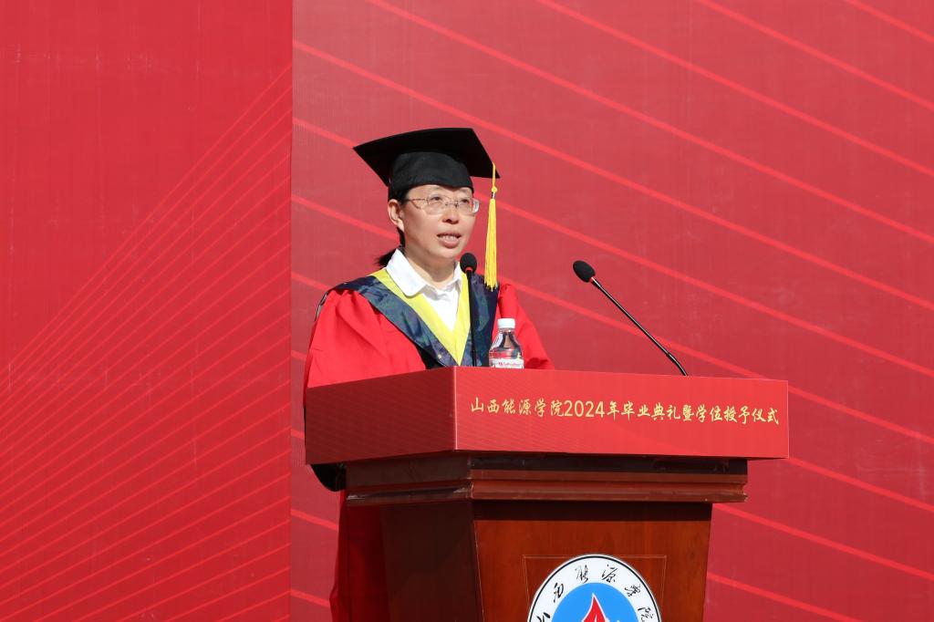 冯院长诚恳地对毕业生提出几点人生建议。一是秉持家国情怀,做堪当民族复兴重任的奋斗者。以黄文秀、申怡飞、刘明侦等优秀人才为榜样,在推进强国建设、民族复兴伟业中展现青春作为,彰显青春风采,贡献青春力量。二是锤炼青春本领,做推动能源产业建设发展的接班人。心怀祖国,心系能源,把个人发展与能源革命的新使命融合起来,在未来的学习和工作岗位上勇挑重担,用实际行动诠释我们能源学子的担当作为。三是永葆赤子之心,做中华优秀传统文化的守护者和传承者。要在以开放的姿态学习了解人类文明成果的同时,更加深入学习了解我们的历史和文化,坚定文化自信,赓续历史文脉,自觉做中华优秀传统文化的守护者、传承者和弘扬者。