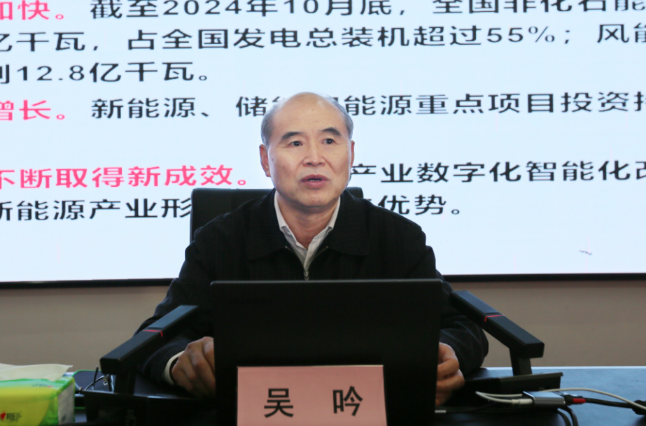 吴吟副局长从能源的基本概念、我国能源消费总体形势预测开讲,围绕发展能源的底层逻辑、能源发展趋势、能源发展对社会的影响,分享了太阳能光伏产业、太阳能光热产业、生物质能产业、储能产业、储热产业等的发展趋势,并提出了深入推进能源革命的五点建议。他强调,习近平总书记明确提出“四个革命、一个合作”能源安全新战略,亲自指导推动能源消费革命、能源供给革命、能源技术革命和能源体制革命,全方位加强国际合作,着力构建清洁低碳、安全高效的能源体系。吴吟建议,把节能作为能源转型的头等大事;因地制宜推行煤炭分级分质利用;规范有序发展甲醇燃料;完善能源科技创新体制机制;深化电力体制改革。吴吟在结束报告时语重心长地说,我国能源结构以煤为主,实现“双碳”目标特别是碳中和目标难度较大,能源系统电力化、低碳化、多元化、分布化、联网化、智动化、数字化是能源转型发展大趋势,发展新能源要挖掘数字技术潜力,坚持系统概念,坚持深化体制改革,抓住能源转型的新机遇,深入推进能源革命,构建清洁低碳、安全高效的能源体系,建设能源强国。