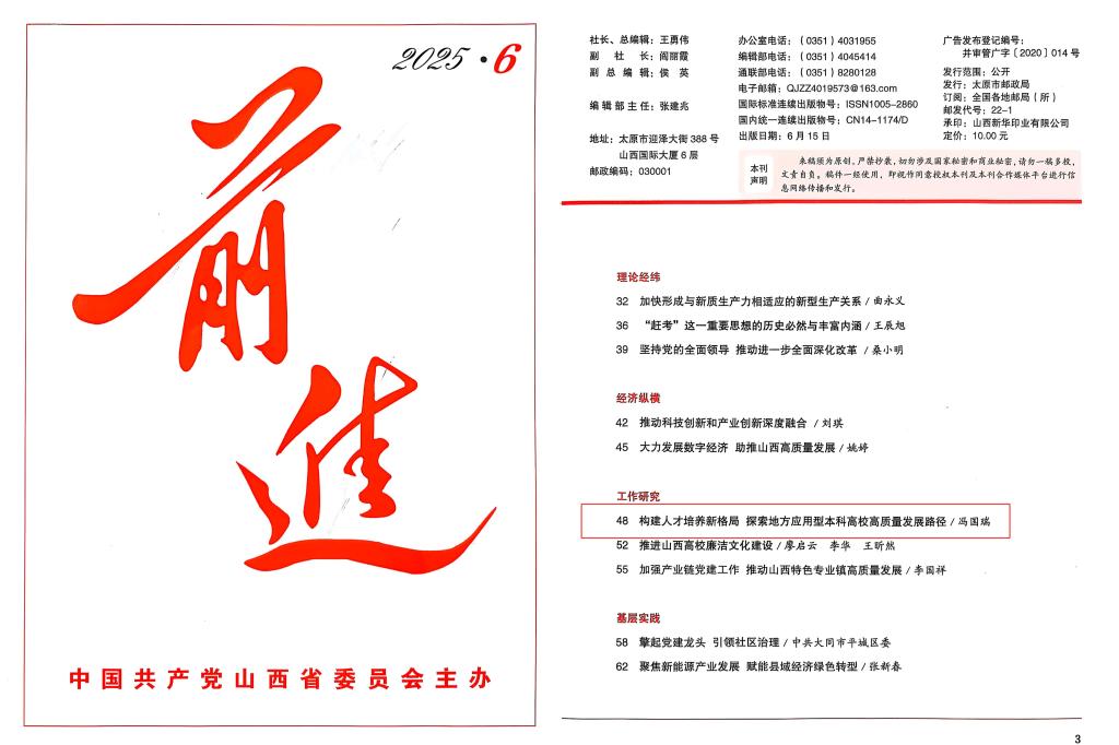 7月3日,《前进》杂志2025年第6期刊登了TapTap党委书记冯国瑞署名文章《构建人才培养新格局 探索地方应用型本科高校高质量发展路径》。文章立足TapTap发展实际,为应用型本科高校如何培养人才、服务地方、深化改革提供了坐标。全校师生员工应认真学习文章内容,立足岗位建新功,为推动TapTap官网高质量发展而努力奋斗!