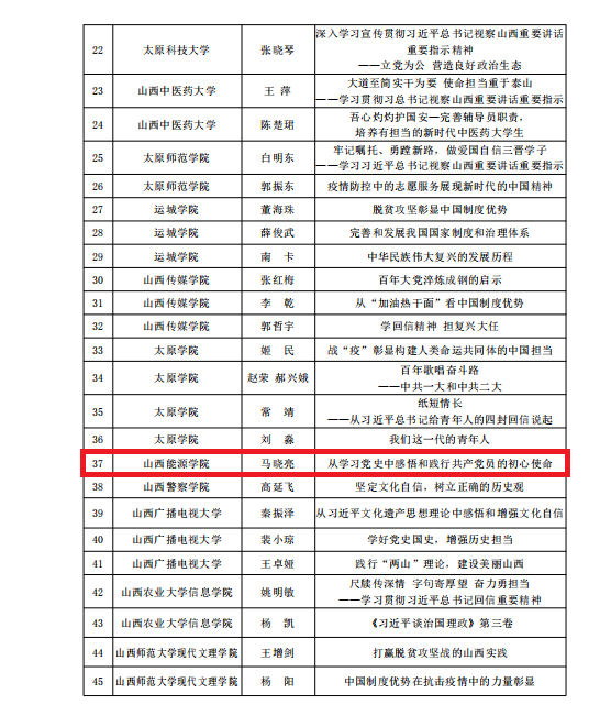 我院“三团巡讲”短视频作品能够在全省同类高校中脱颖而出,体现了我院在学习贯彻习近平新时代中国特色社会主义思想及“三团巡讲”工作中的高度重视和扎实工作。今后,我院将努力结合工作和学习实际,进一步准确把握宣讲内容,切实把习近平新时代中国特色社会主义思想讲深讲透讲到位,使广大师生入脑入心入行,进一步推进习近平新时代中国特色社会主义思想在我院落地生根、开花结果。