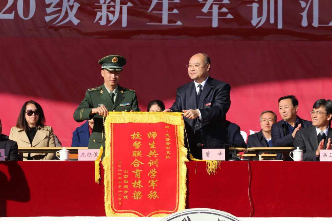 经过10天的艰苦训练,2020级新生军训落下帷幕。10月23日上午八时整我院2020级新生军训汇报表演暨总结表彰大会在学院体育场隆重举行。学院党委书记董峰、院长梁卫国、党委副书记张春有、马光生、纪委书记杜锋、副院长李桂平、孙光辉、孟文俊、各党总支、直属党支部、各部门负责人出席大会及全体2020级新生参加。大会特邀嘉宾武警晋中支队庞铁俊同志出席。大会由党委副书记张春有主持。