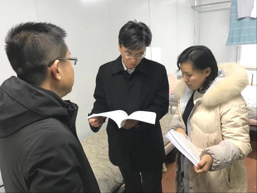 梁卫国院长到达基建处办公场所后,挨个察看了基建处的办公场所和现场工作人员工作情况,紧接着在基建处办公室翻阅了有关施工资料、听取了基建处负责人韩晓冬、工程负责人、监理单位总监、全过程跟踪审计单位驻场人员对在建项目安全、质量、进度、资金使用情况、监管情况、全过程跟踪审计情况、疫情防控情况的具体汇报。