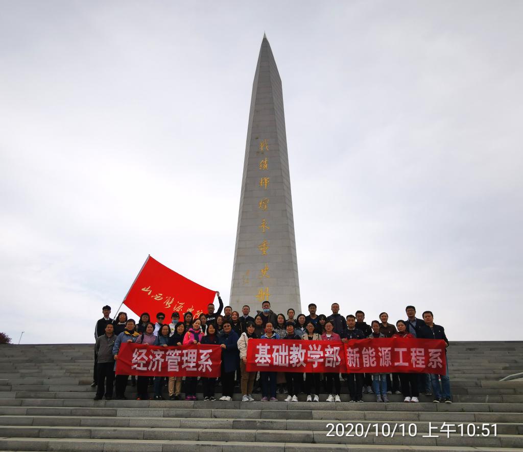 为秉承烈士遗志,发挥模范作用,弘扬革命精神,培养教师党员爱国理念,加强爱国主义教育,从新时代改革创新、转型发展的生动实践和标杆榜样中,感知初心、坚守初心、践行初心、认清使命、扛起使命、不辱使命。经济系、管理系党总支联合新能源系党总支、基础部直属党支部积极开展党日活动,10月10日上午,全体教师党员乘坐校车前往阳泉狮脑山百团大战纪念馆,开展了以“重温百团大战历史,弘扬爱国主义精神”为主题的党日活动。