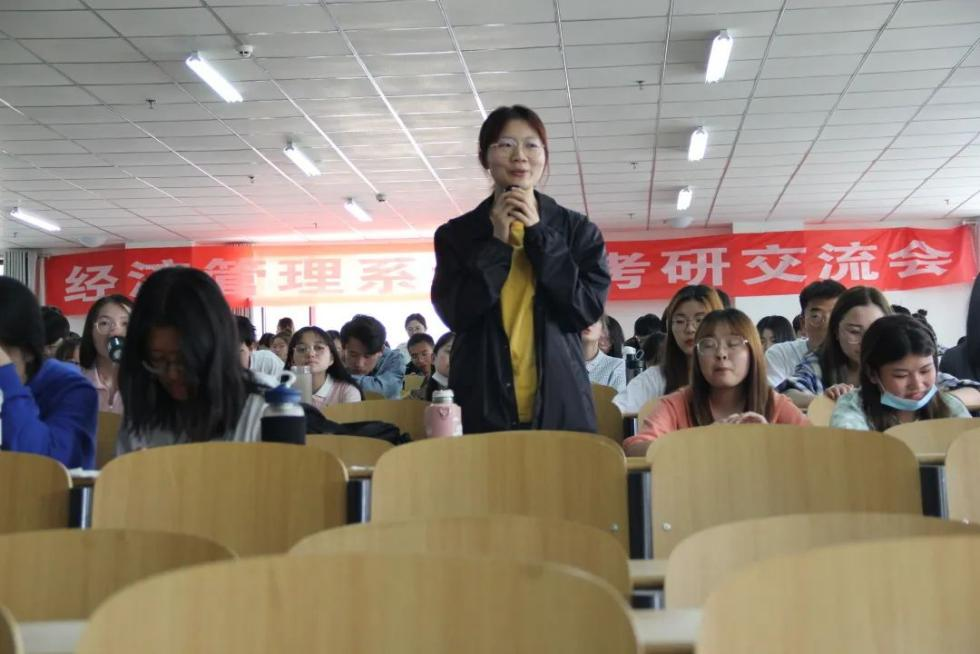 之后,王雅转用自己的考研经历为同学们强调了坚持的重要性,同时还谈到大家在备考中要尽量避免出现“三不要”:不要自我感动、不要“伪仪式感”、不要在宿舍学习。史志怡则为同学们介绍了考研的类别及分数线等基本情况,也通过自身的经历为大家提供了宝贵的备考经验以及择校建议。最后,本次交流会还设有自由提问环节,同学们向四位学长学姐提出了自己在考研考公方面存在的困惑,并得到了他们的耐心解答。