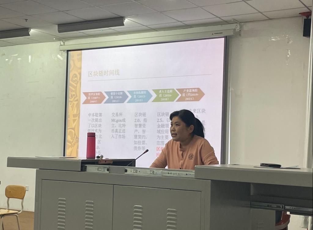 郭教授主要从事信息安全及密码学方向的教学和研究工作。她结合科研团队建设,强调区块链技术可保证所有信息数字化并实时共享,从而提高协同效率、降低沟通成本,使得离散程度高、管理链条长、涉及环节多的多方主体仍能有效合作,同时,区块链技术应用已延伸到数字金融、物流、智能制造、供应链管理、能源、食品药品安全、数字资产交易等多个领域。郭教授的讲座全景描绘了区块链的研究进展,全面展望了在医疗健康、商品溯源等领域的发展前景,使同学们初步了解了区块链技术的现状及发展趋势。郭教授在讲座中认真解答了老师和同学们提出的问题,师生们纷纷表示收获颇丰。