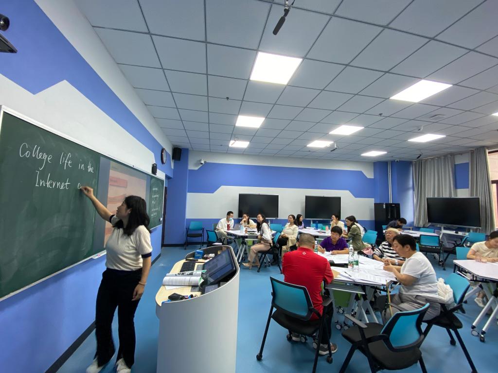 新上岗教师经过精心准备,依次登台进行教学展示。数学教研室马明月老师讲授《函数的连续性》,内容扎实,教态良好;武燕茹老师讲授《隐函数的导数》,课程结构分明,重难点突出。英语教研室王燕芝老师通过讲授Toward a brighter future for all,生动展现了英语课堂的教学激情,教学结构完整。张晶晶老师讲授College life in the internet age,教学结构严谨而不失灵活。申琦老师讲授A child's clutter awaits an adult's return,内容设计合理,课堂充满正能量与活力。体育美育教研室王磊老师引入时事热点,讲授《从黑神话悟空看山西建筑美的传播》,内容充实,课堂互动性强;郑天宸老师讲授《大学体育与健康——跆拳道项目》,并展示跆拳道身法,教学内容丰富,教学结构完整。