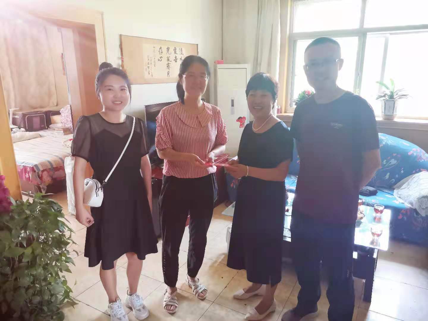 6月27日上午,在中国共产党成立100周年之际,强基学院党总支开展了七一“送温暖”活动,书记任丽芳、宣传委员董帅、组织员杨亚梅一行三人前往困难党员车艳艳老师家中,亲切慰问了车老师及她的家人,向他们致以节日问候和良好祝福,并代表学院党委送上慰问金。