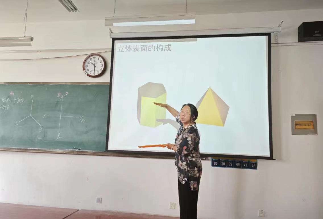 王琪教授以严谨的治学态度和丰富的教学经验,在《画法几何与机械制图》领域有着深厚的造诣。本次示范课中,王教授运用多媒体教学手段,结合三维模型、动画演示等直观方式,详细讲解了平面立体的投影及其截交线投影的画法,使复杂的几何概念变得易于理解和掌握,并通过实际课程内容分析了授课思路,具有指导意义。此次示范课程既是知识的传递,更是一次教学方法的交流。王琪教授就如何优化课程结构、提升教学效果等方面与在座教师进行了深入的探讨和交流。