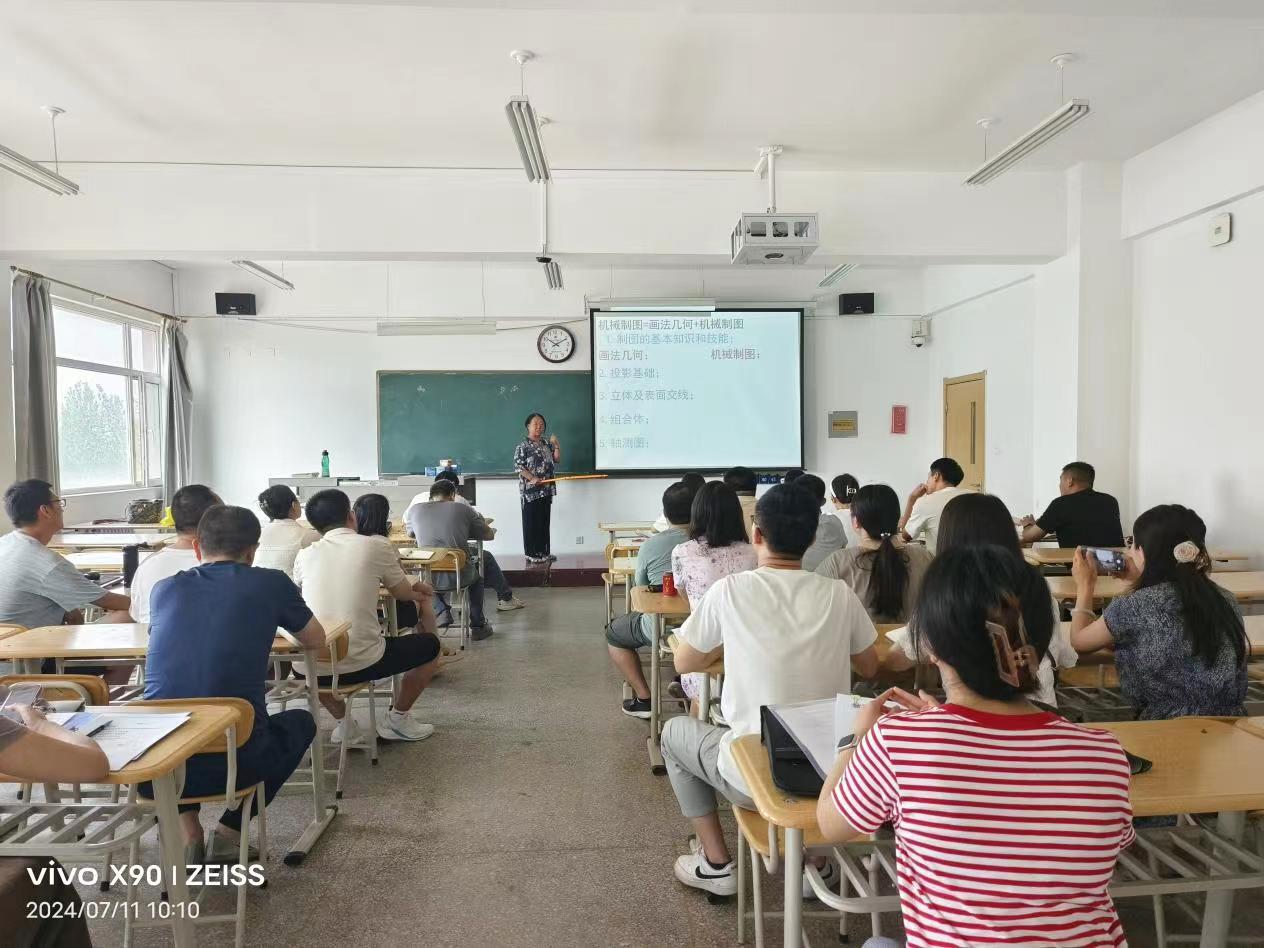 为深入贯彻落实 OBE 教育理念,加强教师教学交流,创新教学方式方法,全面提升教师课堂教学水平和教学质量,机电工程系组织全体教师开展“课堂教学磨课”活动,特别邀请太原理工大学王琪教授讲授专家示范课程。2024年7月11日上午,机电工程系全体教师齐聚3413教室,共同学习观摩了王琪教授主讲的《画法几何与机械制图》专家示范课。