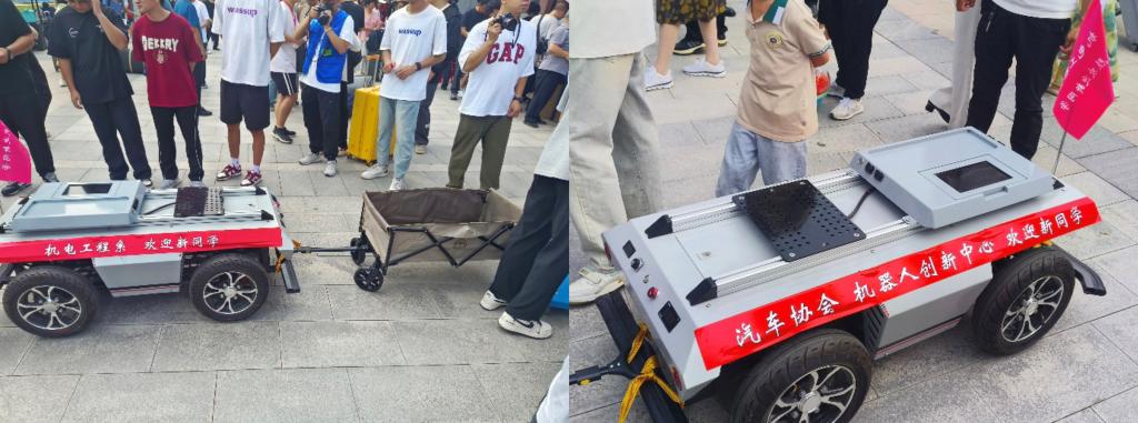 车辆协会的小车穿梭在人群中,不仅成为了迎新工作的得力助手,也成为了新生们关注的焦点。许多新生纷纷驻足观看,对机电工程系的科技创新成果表示出浓厚的兴趣和敬佩。车辆协会的同学们也借此机会向新生们介绍了协会的发展历程、研究方向及未来规划,鼓励更多有志青年加入他们的行列,共同为国家的科技创新事业贡献力量。