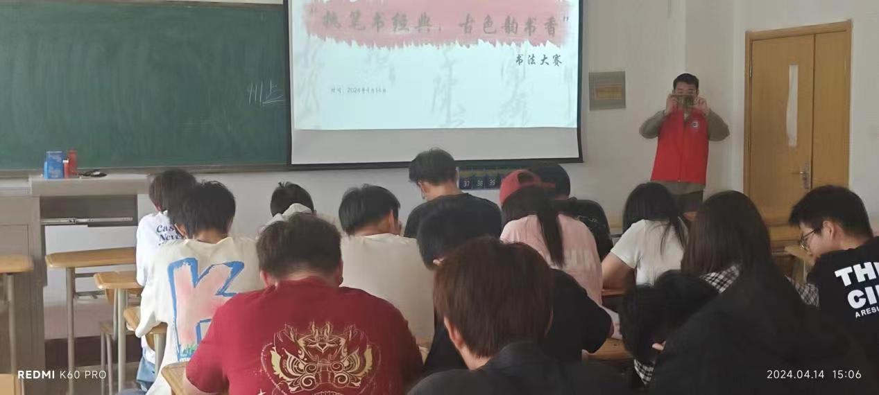 414日,机电工程系分团委在3205教室成功举办了执笔书经典,古色韵书香书法比赛。此次活动在传弘扬中华书法文化,丰富同学的课余文化生活,同时也展示了机电系学子们积极向精神风貌活动开始前,工作人员布置场地,登记人员名单。准备工作完成后主持人宣布活动开始,通过讲解PPT向参赛人员介绍比赛规则,之后活动正式开始。