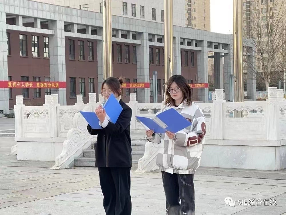 为强化学生爱国主义教育,深刻领悟学习党的二十大精神,做实、做好、做细2023年春季新学期思想政治教育工作,我系于2023年3月13日早7点在迎宾广场举行了升旗仪式。经济系党总支副书记刘健、团委学工办主任信维薇、副主任李泽琛、专职辅导员郭哲琪老师以及各年级学生代表、班干部及系学生会成员参加了此次升旗仪式。