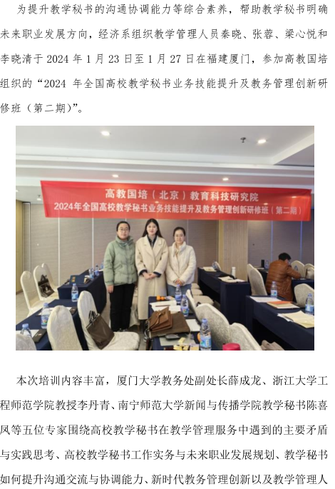 经济系赴厦门参加2024年全国高校教学秘书业务技能提升及教务管理创新研修班培训