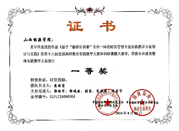 此次竞赛历时8个月,汇集了来自全国28个省、市、自治区286所高校、企业和机关单位,共867件作品参加全国总决赛。经过激烈角逐,我系副主任(主持行政工作)戴国宝博士负责提交的作品《基于“德研证训赛”五位一体的财务管理专业实践教学方案设计与实践荣获专业建设整体实践教学方案设计一等奖,《应用型本科高校校企共建“冠名班”配套实践教学方案设计》荣获配套实践教学方案设计二等奖,《<人力资源管理>课程思政建设实践教学方案设计》荣获课程建设实践教学方案设计二等奖;朱丽丽老师负责提交的作品<数字经济实验>教学方案设计》荣获课程建设实践教学方案设计二等奖;李曼宁博士负责提交的作品<能源经济学>课程建设实践教学方案设计》荣获课程建设实践教学方案设计二等奖。