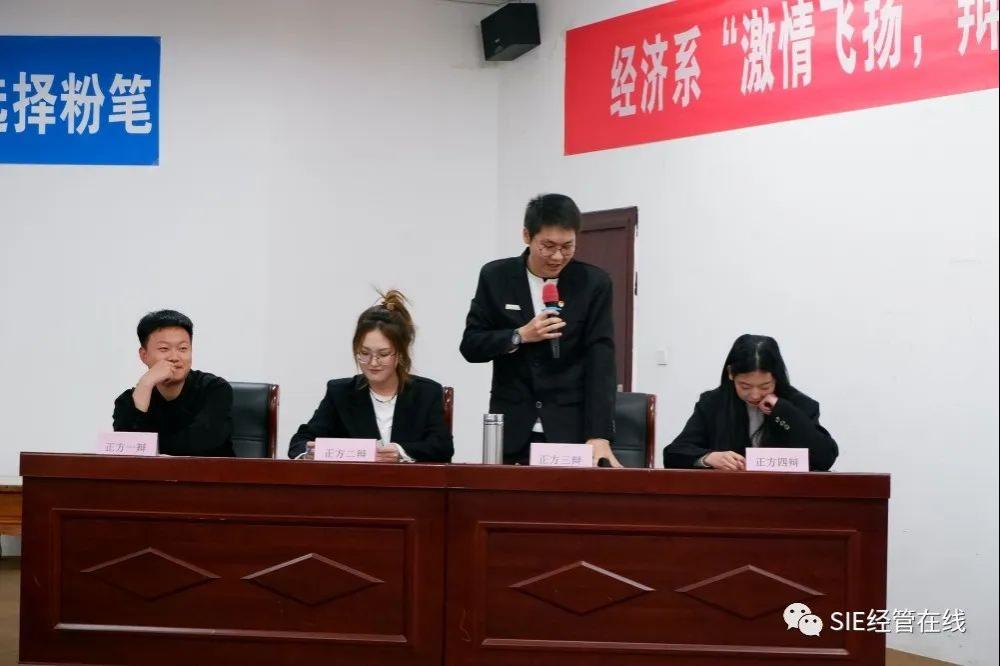 为丰富广大学生课余生活,活跃校园气氛,提高学生文学修养及语言表达能力,经济系于4月4日下午3点在综一阶举行“激情飞扬,辩出自我”主题辩论赛决赛。团委学工办主任信维薇、副主任李泽琛、专职辅导员郭哲琪老师、韩林利老师、王力勤老师以及各班学生代表,班干部及学生会成员参加了此次辩论赛决赛。