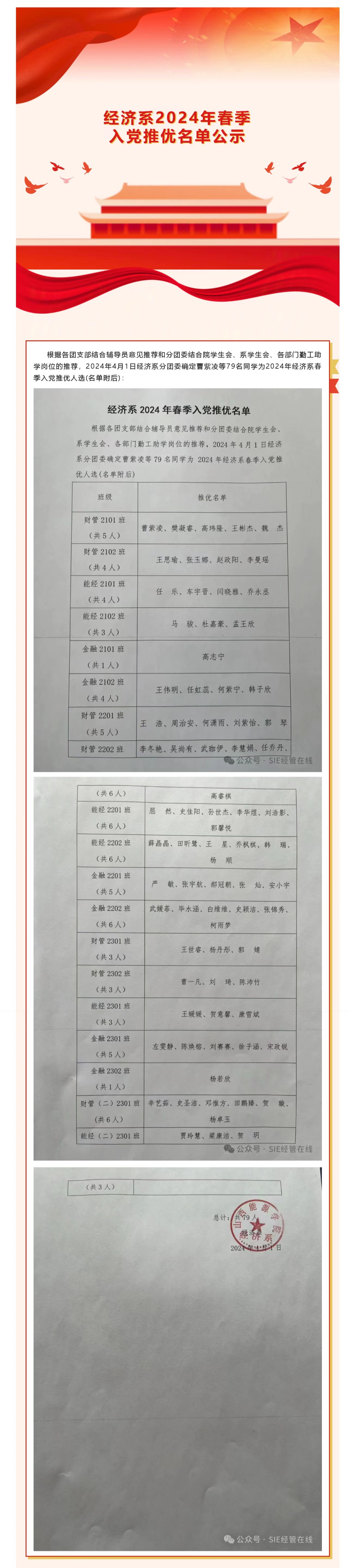 经济系2024年春季入党推优名单公示